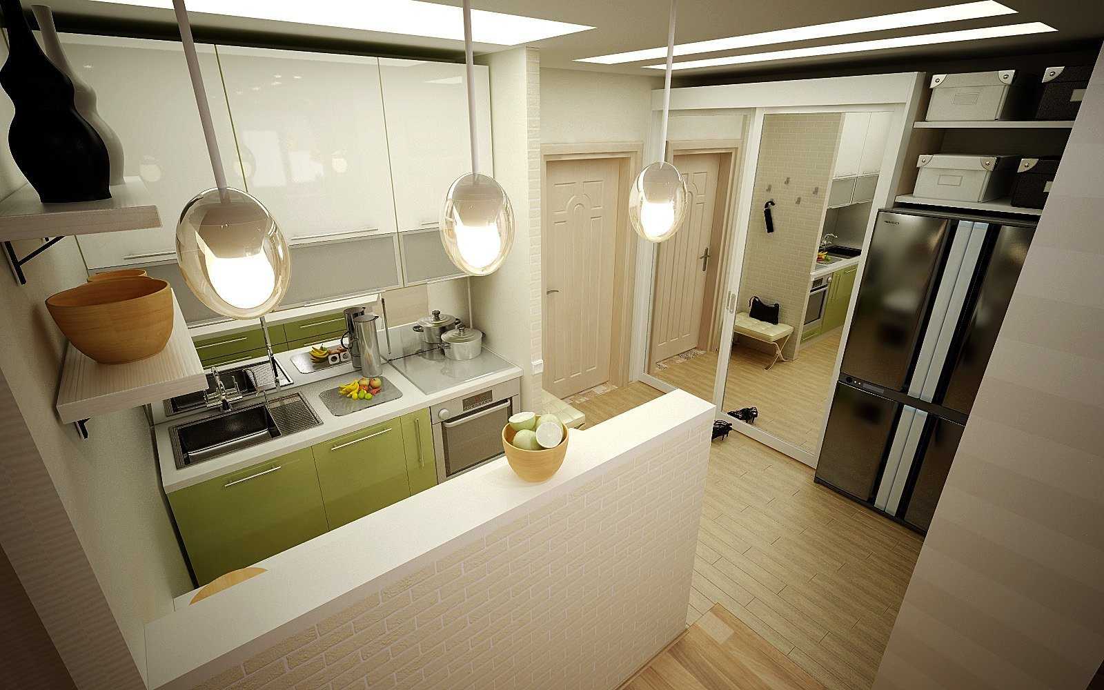 Кухня в прихожей часто бывает темной и тесной, поэтому при планировании дизайна важно учитывать освещение. Потолочные светильники являются идеальным вариантом, потому что они не занимают места в комнате