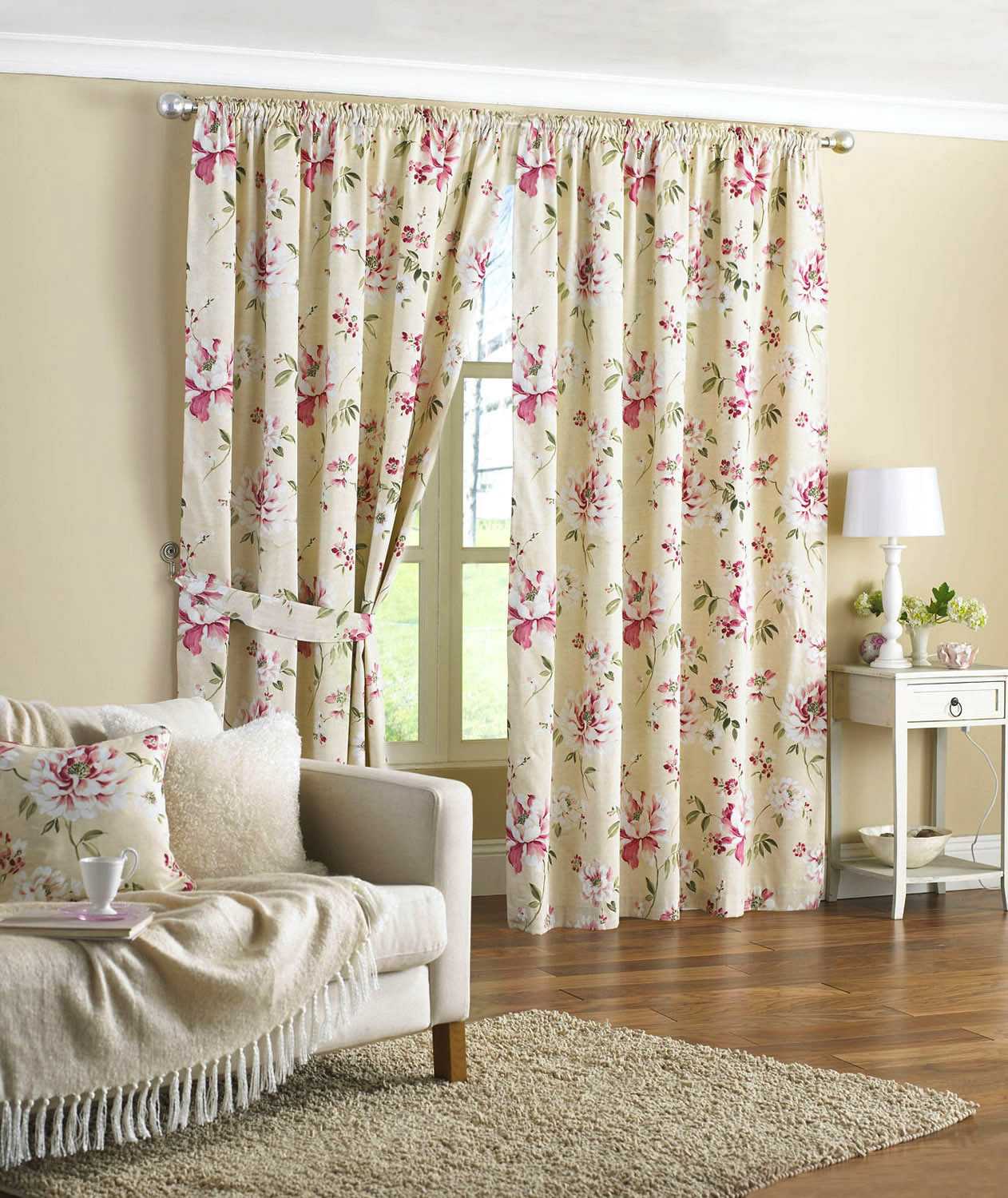 Цветочные шторы будут отлично смотреться на кухне, в детской или спальне. Дизайнеры советуют подбирать элементы декора (подушки, покрывала, светильники) в цвет рисунка на шторах. Это придаст интерьеру изюминку и неповторимый шик.
