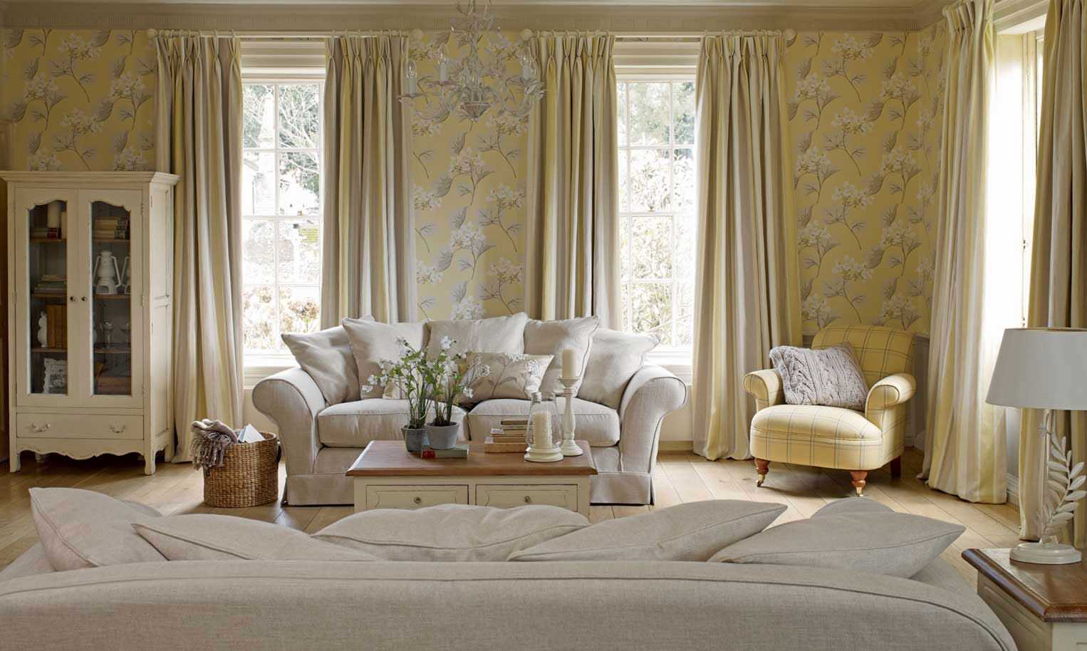Длинные шторы в стиле прованс являются классическим вариантом и больше подходят для гостиных и спален