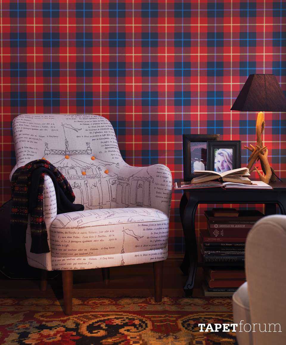Сбалансированной и строгой будет казаться, если акцентную стену оформить «а-ля тартан» или шотландской клеткой. Такой декор придает помещению уют, но, в то же время, довольно лаконичен.