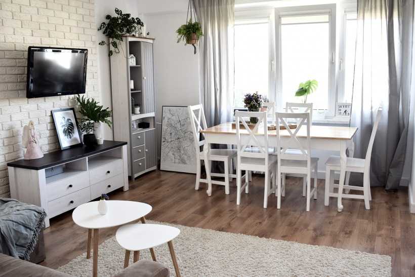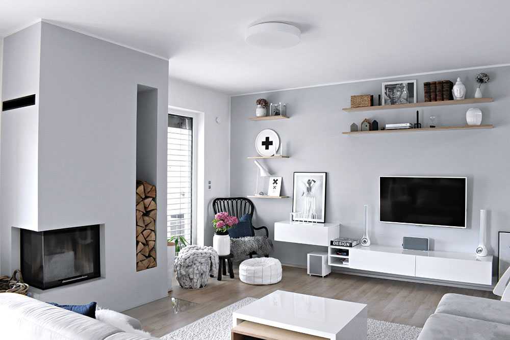 Белые стены — хороший выбор для людей, не имеющих представления, как обустроить гостиную. В сочетании с деревянным полом они создадут практически классическое сочетание. Конечно, эти два элемента можно использовать и в современных интерьерах, они также подойдут для гостиной в скандинавском стиле. Для небольших гостиных отлично подойдет пол из светлого дерева — такая цветовая гамма оптически увеличит интерьер. Если вы выберете мебель подобного цвета, вы получите эффектный и свежий декор для гостиной.