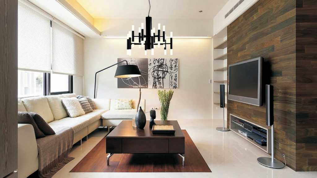 Независимо от своего стиля, интерьер гостиной в доме располагает искусственными светильниками. Их виды известны всем – люстра, бра, «точки», торшеры, лампы.