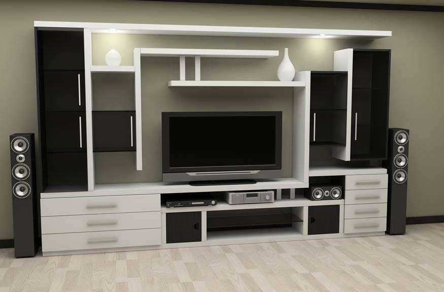 Пространство должно заполняться так, чтобы мебель не мешала передвижению, была на значительном расстоянии друг от друга. Мебель в зале должна быть соразмерной с площадью помещения. Если главным предметом в интерьере является диван, установленный по одной линии возле стены, то на противоположной поверхности закрепляется телевизор, под который можно установить тумбу или комод. В качестве мест для хранения используется угловая мебель, которая занимает мертвую зону угла.
