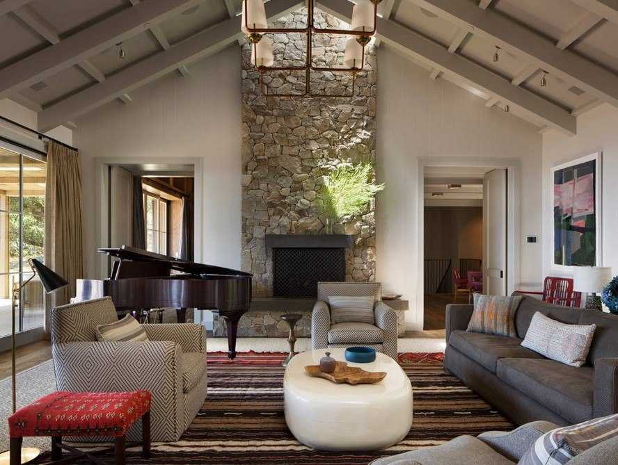 Частные дома имеют одну важную особенность – индивидуальное строительство обеспечивает возможность спроектировать объект недвижимости в соответствии с собственными вкусами и предпочтениями. Гостиная чаще всего в таких домах играет роль зала, где собираются всей семьей, отдыхают за чтением книг, принимают гостей.