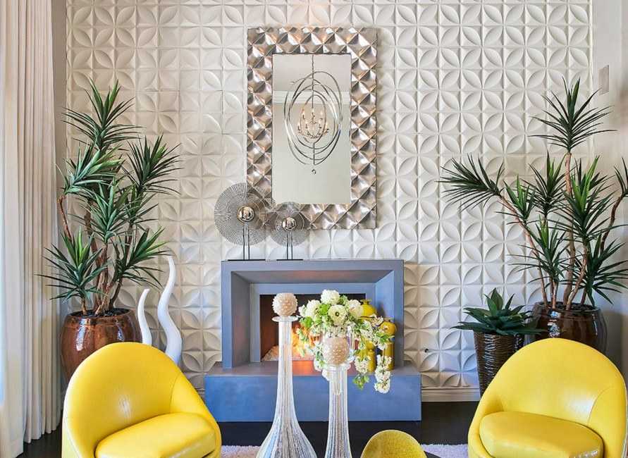 Архитектура стен в 2019 году должна быть максимально усложненной. Приветствуются оригинальные геометрические формы и линии, будут уместными многоярусные карнизы и лепнина. В декоре можно использовать никель, различные металлы, латунь. В виде дополнительных украшений в общем интерьере успешно будут смотреться картины в роскошных рамах, оригинальные светильники, скульптуры и статуэтки.