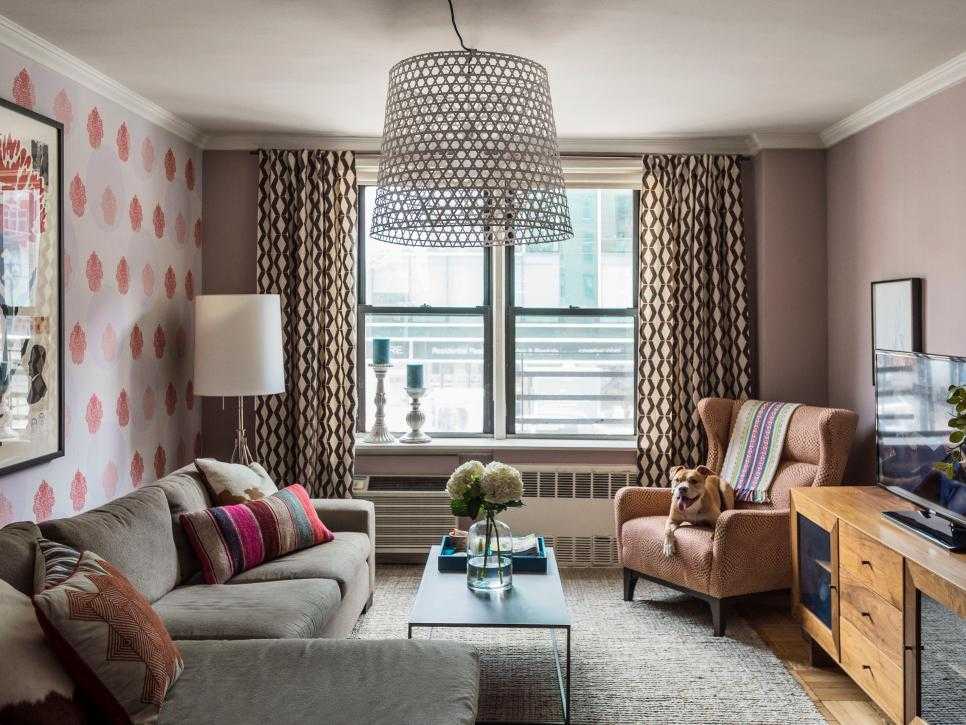 Добавьте в комнату светильники с интересными абажурами или живые цветы, и вы увидите как преобразится ваша гостиная