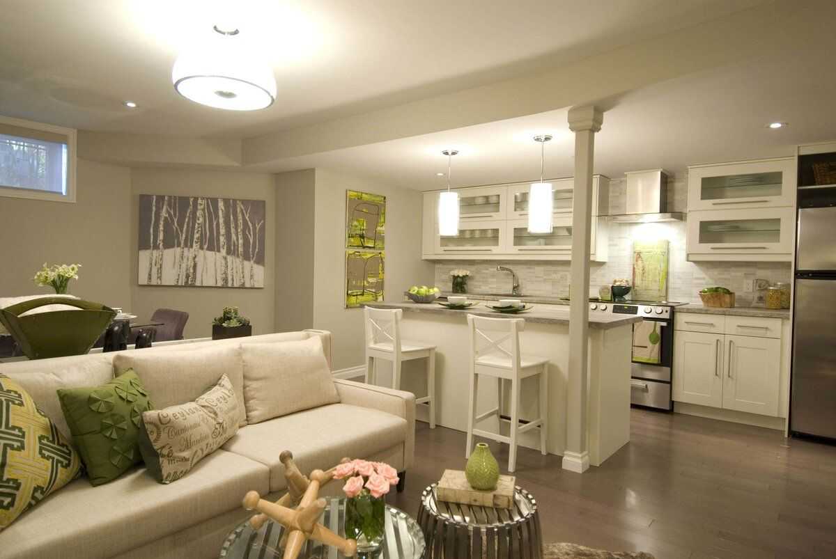 Вообще комнату можно назвать маленькой при метраже до 12 метров квадратных. Все что больше, уже средний размер. Для расширения пространства гостиную комнату объединяют с кухней, прихожей или балконом. Объединить помещения можно посредством демонтажа одной или нескольких стен, главное – убедиться, что стена не несущая. Другой вариант, менее радикальный, — возведение арочных сводов или сквозных ниш вместо дверных проемов. Широкая арка из гипсокартона подойдет для объединения гостиной с балконом, а если в ней создать нишу с полками, то в ней удобно разместятся горшки с цветами. Учите, что официально согласовать объединение гостиной с балконом очень сложно.