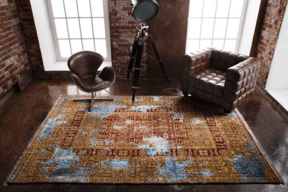 Ковер в лофт стилистике может выглядеть как старый советский ковер с кляксами