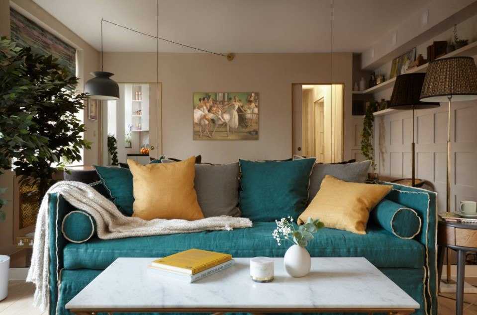 - Освещение в низкой гостиной: если вы будете сильно освещать потолок, то есть использовать потолочную лампу или подвесную лампу с абажуром или абажурами, направленными вверх, гостиная будет казаться выше. Точно так же, если вы повесите люстру абажурами вниз, потолок останется в тени, и комната будет казаться ниже, чем на самом деле.