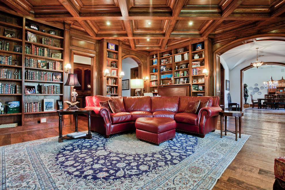 Угловые сегменты акцентируют внимание на определенной части комнаты. Высокие стеклянные шкафы делают комнату светлее