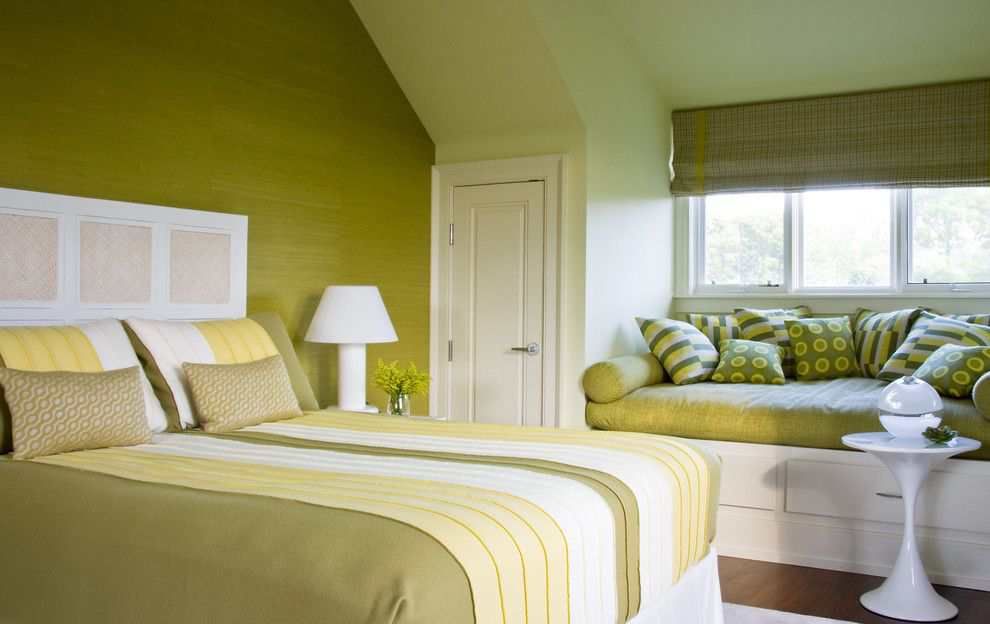Витаминное сочетание зеленого с желтым в светлой спальне