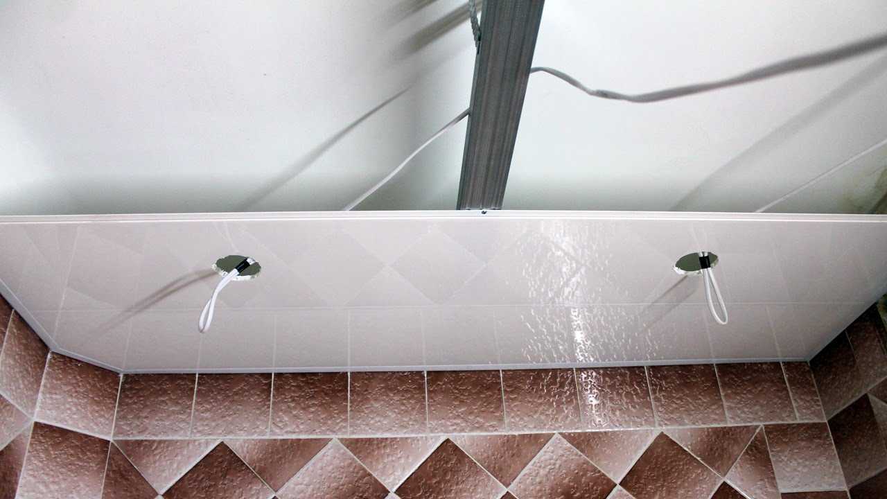 Использование натяжных потолков довольно популярно, потому что они не только устойчивы к влаге, но и позволяют выровнять неидеальную поверхность потолка.