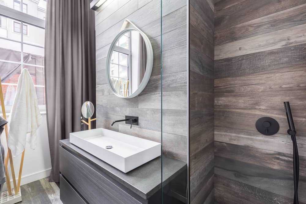 - Желательно сочетать не более двух оттенков дерева при отделке ванной.