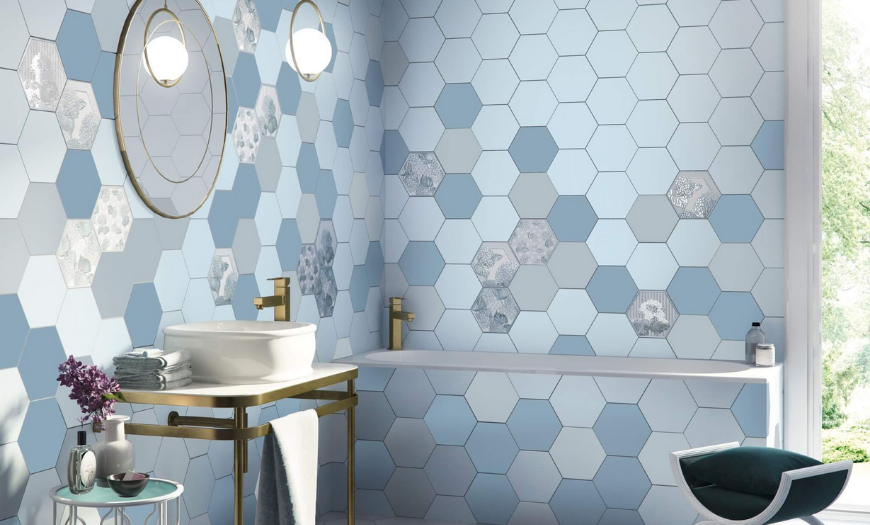 - Используйте шестиугольную и объемную плитку только для акцентов.