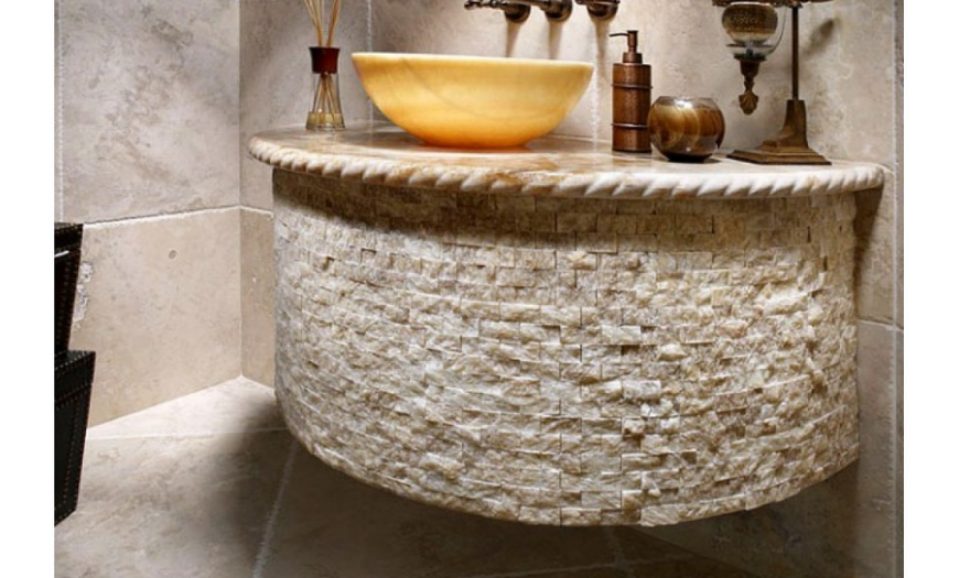 Красивые и необычные формы чаш из натурального или искусственного камня создадут поистине царственную обстановку. При этом светлый фон и темные прожилки мраморных элементов уже не котируются. В моде более оригинальные расцветки.
