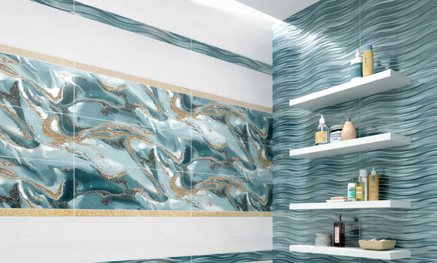 В 2021 году в моде будет плитка для ванных комнат с глянцевой металлической поверхностью, плитка со встроенными элементами из металла (например, мраморная плитка с золотыми прожилками), а также 3D-плитка, напоминающая металлические листы с пространственным рисунком.