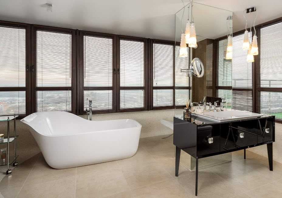 Для эффектного оформления ванной с окном дизайнеры используют различные стилевые направления.