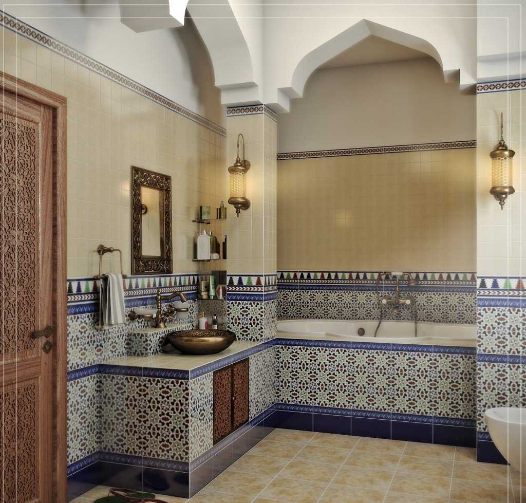 Египетский и турецкий стили будут хорошо смотреться в просторной большой ванной комнате. Для маленькой ванной подойдет китайский или японский интерьер.