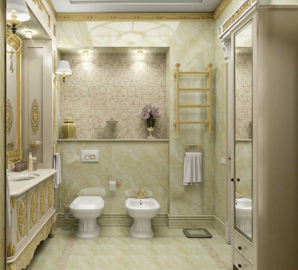 Полноценный дизайн состоит из аксессуаров, банных принадлежностей, которые размещают в соответствии с «правилами вытянутой руки».