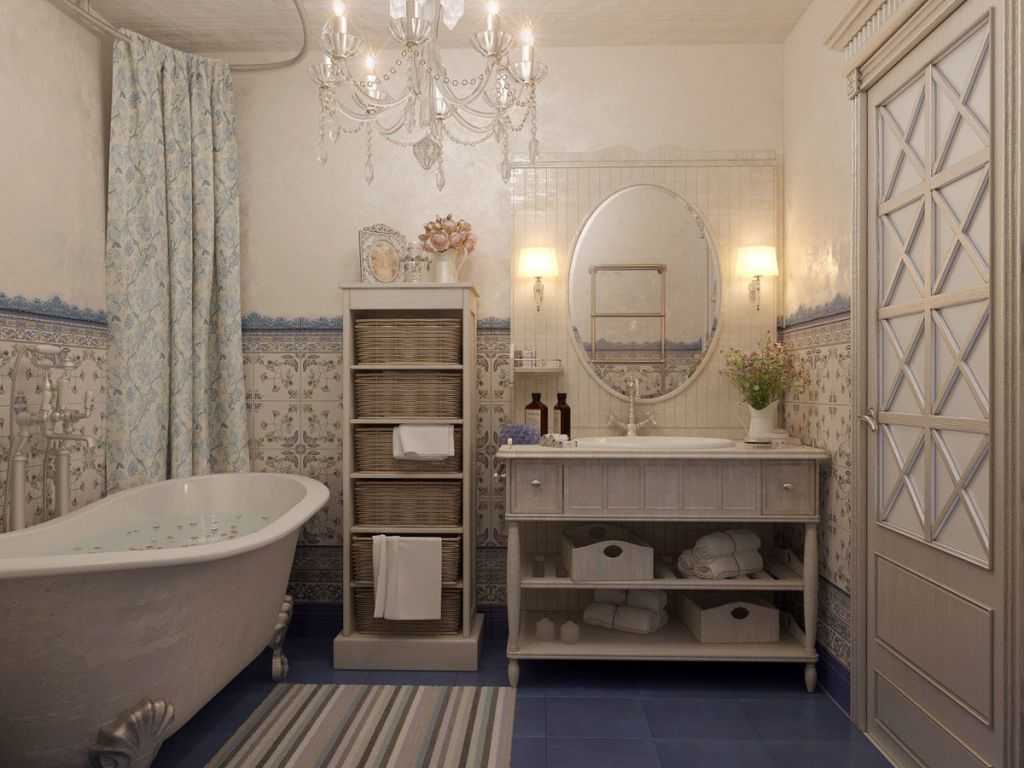 При оформлении ванной комнаты, дизайн подбирают, подходящий для всей квартиры.
