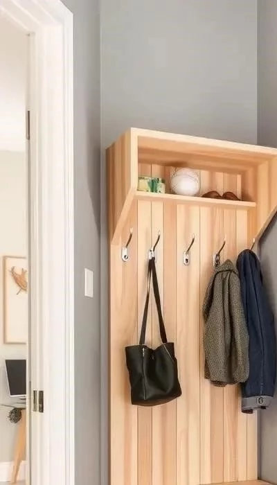 - Открытая вешалка: Для повседневной одежды достаточно стильной панели с крючками или рейлинга. Это не загромождает пространство, в отличие от полноценного шкафа.