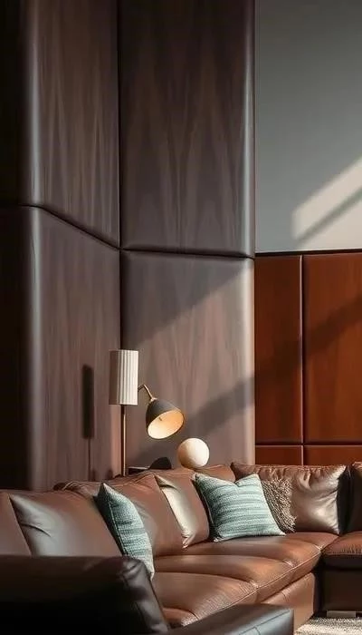 Тренды 2025 диктуют использование кожи в различных формах: от обивки мебели и стен до декоративных элементов. Особенно востребованы кожаные панели, создающие эффект дорогого и изысканного интерьера. В моде также кожаная отделка стен, придающая помещению особую атмосферу. Не стоит забывать и о кожаных аксессуарах, таких как ручки, рамы для картин и зеркала, которые добавляют интерьеру индивидуальность.